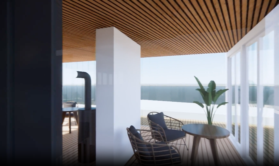 Poijusta tulee yhteisöllinen kerrostalo, jossa on luksustasoisia yhteisiä tiloja, kuten merinäköaloilla ja lasiseinillä varustettu kattosauna sekä takkahuone, toimiva talopesula, vierashuone sekä keittiö..