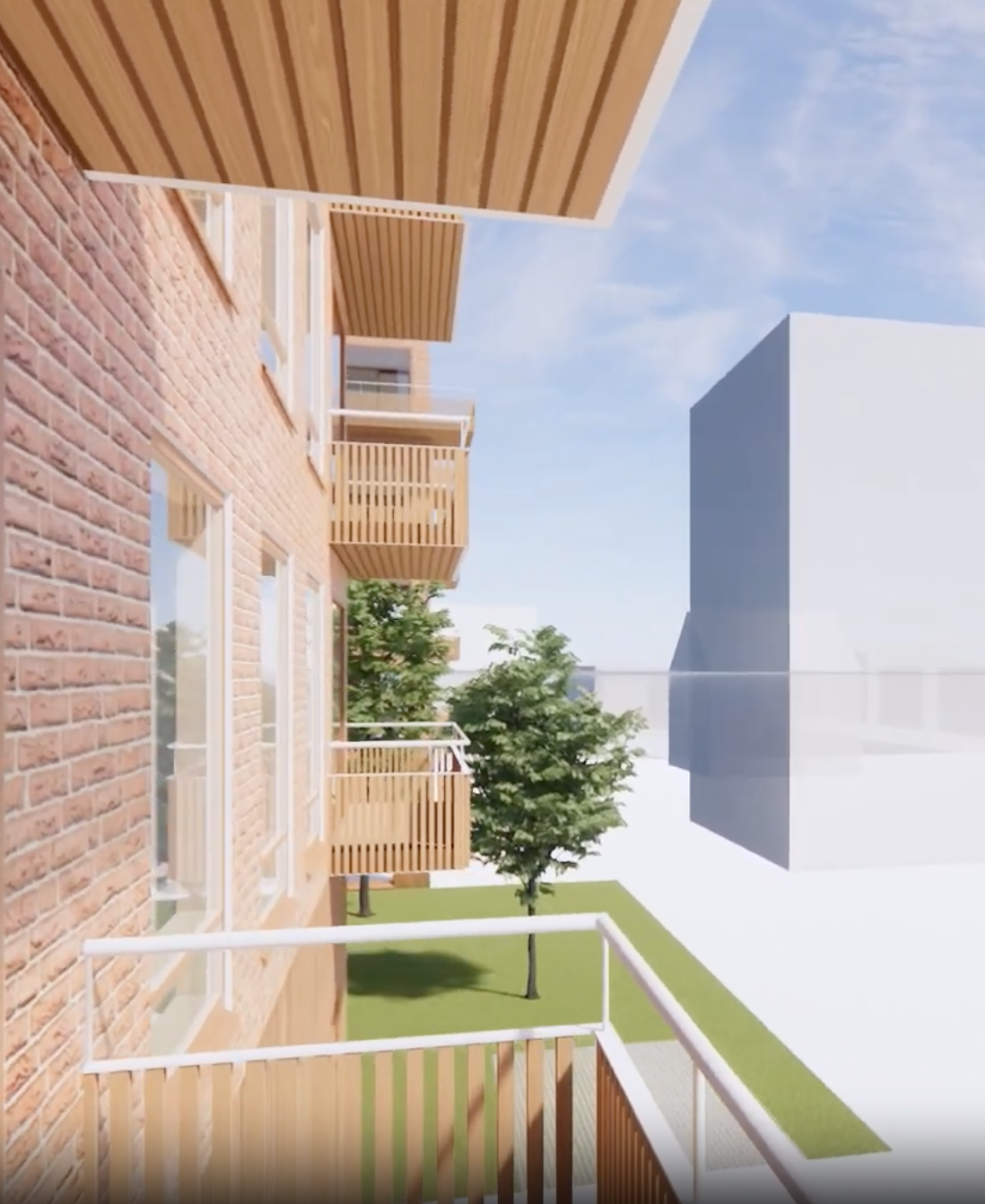 Pienkerrostaloja yhdistää suojaisa ja vehreä oleskelupiha. Rustiikkinen punatiiliverhoilu ja tyylikäs, rakennukset halkova lasinen porraskäytävä tekevät kokonaisuudesta näyttävän lisän Verkkosaaren rantamaisemaan – ja asukkailleen aidon ylpeydenaiheen.